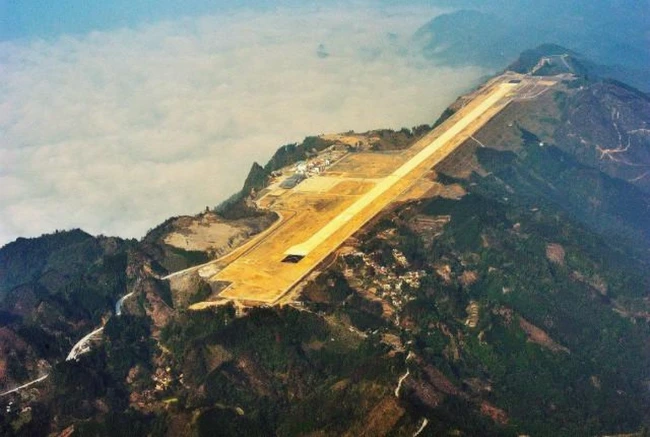 Aeroportul din munţii Himalaya se află la 2.750 de metri şi este expus la vânt puternic şi vizibilitate redusă din cauza norilor. Decolarea este o adevărată provocare: pista de 530 de metri, cu o înclinaţie de 12%, se încheie abrupt cu o prăpastie de 600 de metri. Şi în acest caz, pot ateriza doar avioane de mici dimensiuni.