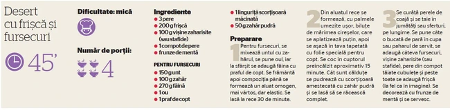 Puştiulică-a fost răcit şi-a rămas cam fonfăit, iar când vrea să zică „ţ", el pronunţă numai „p": „M-am jucat cu-alpi copilaşi «Pară, pară, vrem ostaşi!»". Şi o laudă din suflet, şi serios, şi cu un zâmbet pe figura lui ştrengară: „Cel mai bun desert din pară!"Pagini realizate în colaborare cu Click! Poftă bună!