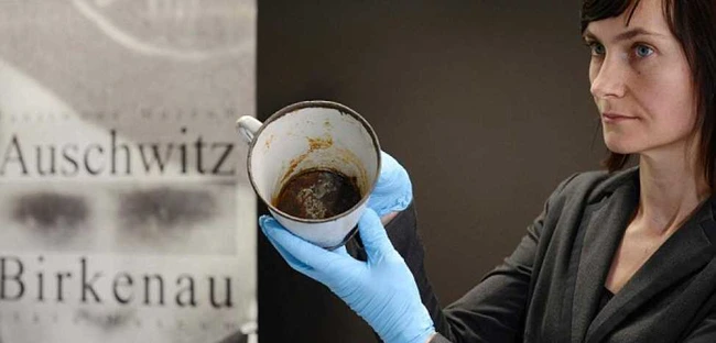 „Comoara” ascunsă într-o cană cu fundul dublu care a aparţinut evreilor din lagărul morţii, descoperită la Muzeul Auschwitz FOTO