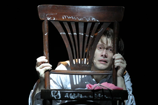 Tudor Chirilă (foto), care semnează şi ilustraţia muzicală a spectacolului, pune accent, în rolul principal al nebunului Poprişcin, pe tragicomedia din text.