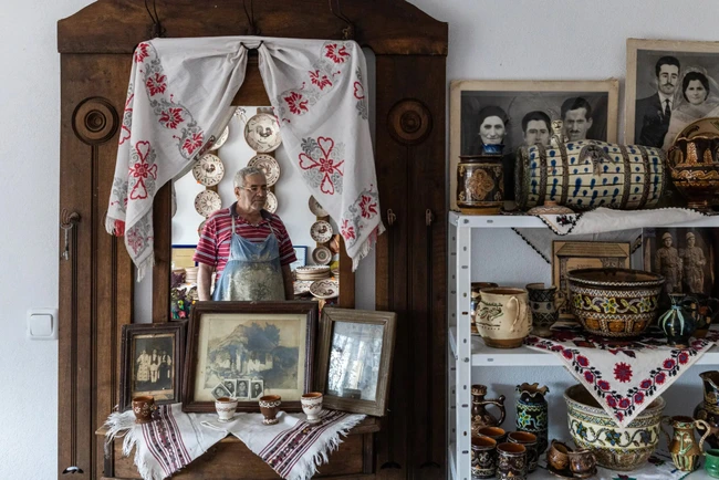 „Sunt fotografii cu bunicii și părinții, obiecte transmise din generație în generație... Cel mai vechi este din 1927... Este un butoiaș de ceramică, ornat cu boboci albaștri, o culoare despre care unii susțin greșit că nu este specifică ceramicii de Hurez. Pretind că la Horezu nu s-a folosit albastru, galben, verde, în ciuda dovezilor pe care le deținem. Este clar că și aceste culori se utilizau chiar și la începutul secolului trecut. Într-adevăr, albastrul nu se folosea ca fond, la farfurie sau la alte obiecte, pentru că nu este tradițional pentru ceramica de Horezu, dar se folosea pentru decor: boboc, spic, altiță...”, arată olarul.