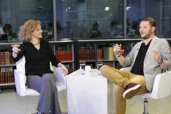 Actriţa Rodica Lazăr şi regizorul Andrei Creţulescu, în studioul Adevărul Live FOTO Eduard Enea