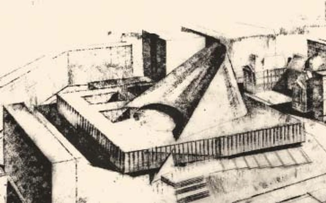 Proiect pentru Teatrul Naţional din Bucureşti (1961), realizat de Liviu Ciulei în colaborare cu arhitecţii Stan şi Paul Bortnowski