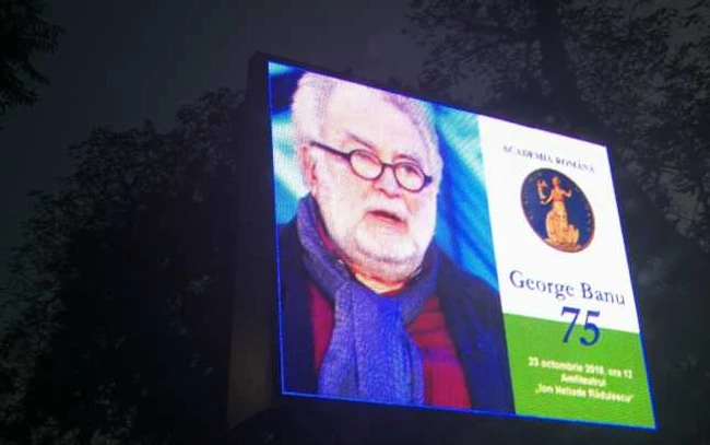În cadrul unei sesiuni aniversare organizate, pe 23 octombrie, de Secţiile de Filologie şi Literatură şi Arte, Arhitectură şi Audiovizual ale Academiei Române, personalitatea lui George Banu a fost elogiată de preşedintele Academiei, Ioan-Aurel Pop, preşedintele Secţiei de Filologie şi Literatură, Eugen Simion, de Răzvan Theodorescu, vicepreşedinte al prestigioasei instituţii, preşedintele Secţiei de Arte, Arhitectură şi Audiovizual, şi profesorul Mircea Martin, membru corespondent al Academiei Române.