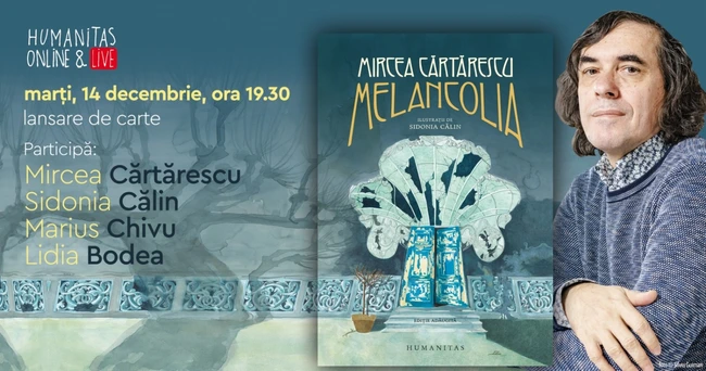 0Marţi, 14 decembrie, ora 19.30, Editura Humanitas vă invită la o întâlnire online cu Mirea Cărtărescu, Sidonia Călin, Marius Chivu şi Lidia Bodea despre volumul de povestiri Melancolia, ediţie adăugită, cu ilustraţii de Sidonia Călin.
