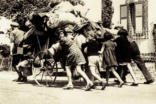 „Franţa, mai 1940. Am văzut sute de asemenea de imagini: nu doar filme şi fotografii, ci scene reale, nesfârşite convoaie de oameni năpăstuiţi care s-au retras în Sud odată cu invazia nemţilor – peste două milioane de suflete numai din Paris. Cei mai sărmani, fără maşină, şi cei care nu au mai găsit locuri în tren au pornit pe jos ori pe bicicletă, împingând un cărucior cu ce aveau mai de preţ, câteva lucruri pentru a rezista pe drum şi a putea dormi sub cerul liber", scrie Mihai Şora.
