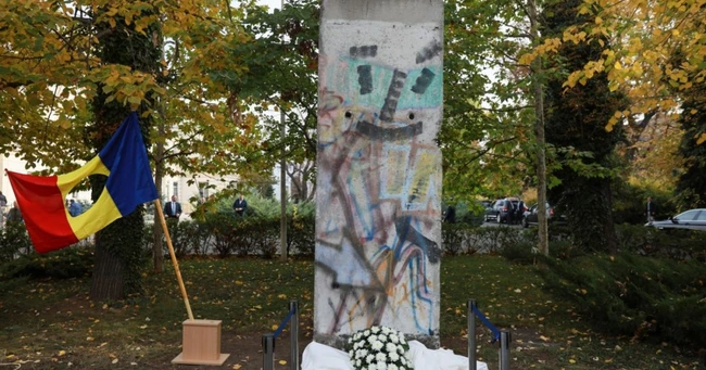 0O bucată din Zidul Berlinului a fost adusă la Bucureşti de Institutul de Ştiinţe Politice şi Relaţii Internaţionale ''Ion I. C. Brătianu'' al Academiei Române (ISPRI) şi amplasată în Parcul Academiei. Piesa, inclusă recent în patrimoniul instituţiei, a fost dezvelită joi, în prezenţa ambasadorilor Cord Meier-Klodt şi a lui Emil Hurezeanu.