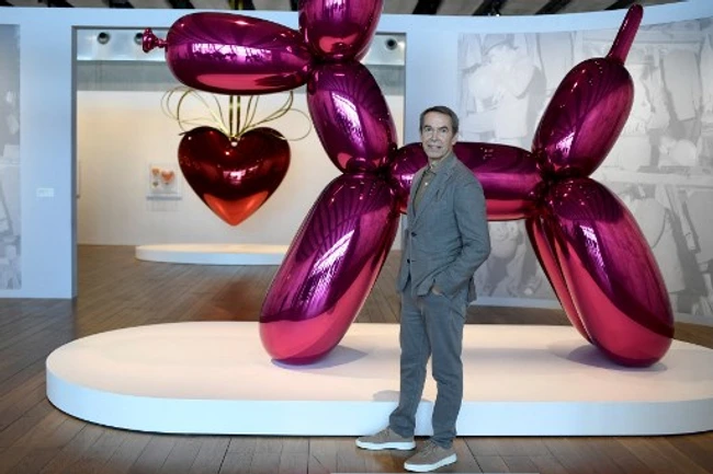 Jeff Koons, care nu era prezent la eveniment, este un pictor şi sculptor american care se inspiră din obiecte de uz cotidian, inclusiv din baloanele realizate în forma unor animale.
