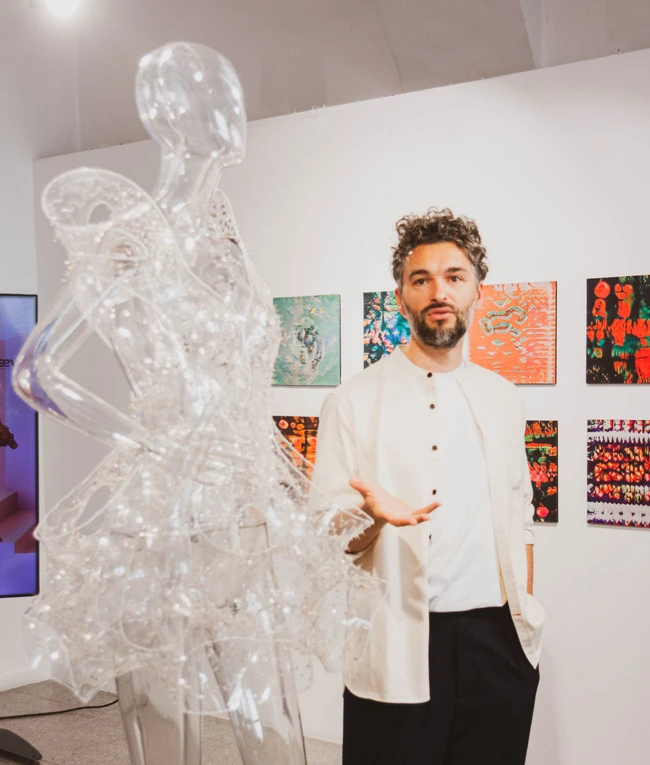 Vlad Țenu vorbește despre creativitate, despre rochia din 25.000 de cristale Swarovski, despre tehnologiile digitale și modul în care ele pot căpăta utilitate la scară largă, precum și despre expoziția „Glimpses of Infinite Simmetry”, pe care o pregătește pentru RCW24. Expoziția va putea fi văzută la Galeria de Artă „Victoria” din Iași, în perioada 15-26 mai 2024.