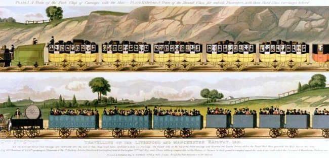 De aceea, vagoanele trenurilor au început să fie construite şi exploatate în funcţie de membrii claselor sociale care le foloseau în timpul unei călătorii. Delimitările nu s-au oprit însă doar la interioarele vagoanelor, ci şi la elementele exterioare. Spre exemplu, pe linia Liverpool-Manchester, vagoanele pentru aristocraţie aveau culoarea galbenă, iar cele pentru omul obişnuit erau albastre.