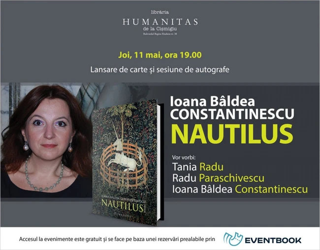 Joi, 11 mai, de la ora 19.00, va avea loc lansarea romanului „Nautilus” de Ioana Bâldea Constantinescu, la Librăria Humanitas de la Cişmigiu, La eveniment vor vorbi, alături de autoare, criticul literar Tania Radu şi scriitorul Radu Paraschivescu.