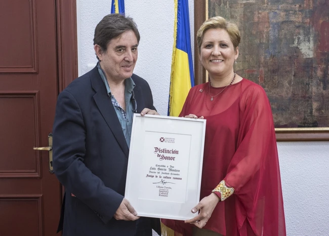 În semn de apreciere pentru sprijinul acordat culturii române, preşedintele Institutului Cultural Român i-a oferit lui Luis Garcia Montero o distincţie de onoare, în prezenţa directorului Muzeului Naţional al Literaturii Române, Ioan Cristescu, a scriitorului Dinu Flămând şi a poetului spaniol Juan Carlos Abril, critic literar şi profesor la Universitatea din Granada, precum şi a altor personalităţi culturale.