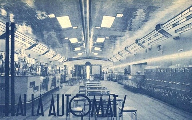 La începutul anilor ’30, în București au apărut mai multe localuri în care puteai lua o masă rapidă, fie doar un sendviș și un țap de bere sau o cafea cu lapte, fie adevărate preparate care îți erau aduse la masă de chelneri. În articolul din „Realitatea ilustrată“ semnat A.M. se relatează despre diferitele automate care începuseră să împânzească Bucureștiul, fiecare cu atmosfera lui mai mult sau mai puțin plăcută: „Apariţia la Bucureşti a barului automat, anunţată cu mult înainte prin placarde uriaşe, a stârnit murmure aprinse de curiozitate printre toţi acei cari nu avuseseră prilejul să treacă graniţa. Vasăzică, introduci o fisă şi imediat, la câţiva centimetri, îţi apare sandwich-ul, prăjitura sau băutura dorită. Chelnerul şi odată cu el bacşişul, au dispărut. Practică invenţie“.