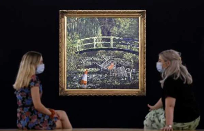 Un tablou al lui Banksy, omagiu adus lui Claude Monet, estimat la cel mult 5 milioane de lire sterline, scos la licitaţie