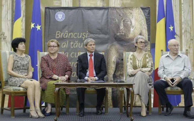 0Dacian Cioloş, premierul României, Corina Şuteu, ministrul Culturii, alături de actorii Victor Rebengiuc şi Oana Pellea au participat, luni, la o conferinţă de presă la Palatul Victoriei pentru a încuraja subscripţia pentru achiziţionarea operei lui Brâncuşi, „Cuminţenia pământului“. Puţin peste 138.188 de euro s-au strâns până acum prin campania de subscripţie.