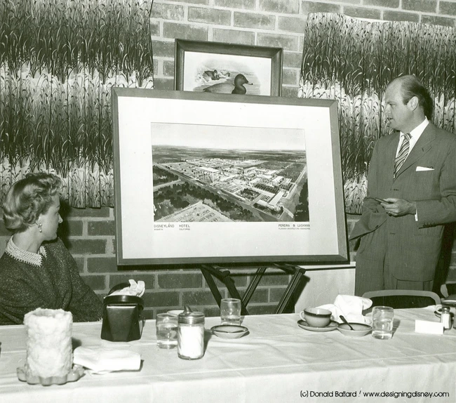 Mai întâi, câteva vorbe despre istoria primului Hotel Disneyland. La momentul „revelaţiei turistice“, situaţia financiară a imperiului Disney nu era una tocmai pe roze. O sumă uriaşă de bani fusese investită în construcţia parcului tematic, astfel încât omul de afaceri american şi-a dat seama că singura soluţie era asocierea cu o altă persoană, potentă financiar. Primul pe listă a fost un prieten, Art Linkletter, personalitate a vremii, iniţiatorul celebrei serii „Copiii spun lucruri trăsnite“. Linkletter a spus pas, neconvins de reuşita financiară a planurilor lui Disney. Potrivit propriei mărturii, din autobiografia publicată la mijlocul anilor 1960, Linkletter avea să se plimbe prin faţa Hotelului Disney, ani mai târziu, spunând, la fiecare pas făcut: „Şi iată încă un milion pe care l-aş fi putut face“.