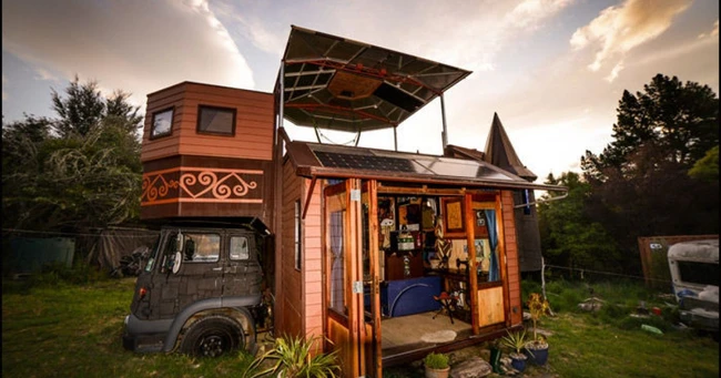 0Un cuplu din Noua Zeelandă are un stil de viaţă mai puţin obişnuit. Justin şi Jola Siezen, împreună cu fiul lor Piko, locuiesc într-o rulotă care se transformă într-un castel cu bucătărie spaţioasă şi jacuzzi pe acoperiş.