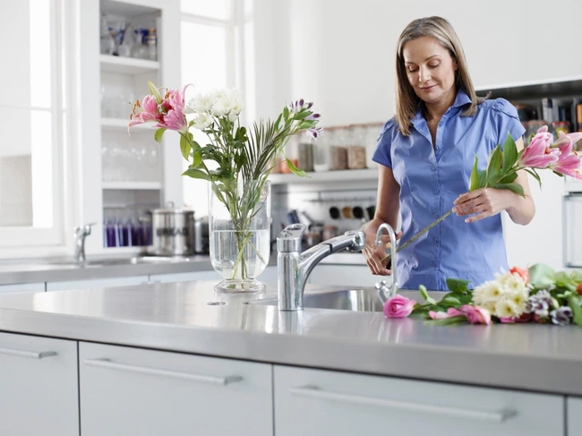 1. În primul rând, vasul în care punem florile ar trebui spălat cu săpun şi apă fierbinte, pentru a preveni dezvoltarea bacteriilor şi a ciupercilor. Apoi, acesta ar trebui umplut, pe jumătate, cu apă caldă de la robinet, temperatura ideală fiind de 43 de grade Celsius.