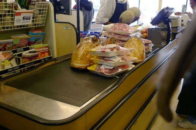 Banda (transportorul) pentru produse este curăţată foarte rar, iar o astfel de bandă este schimbată şi după 30 de ani, în anumite cazuri. Este confecţionată din PVC, material poros care conţine 43% produse petroliere, şi este destul de dificil de curăţat, dacă nu chiar imposibil, notează Huffington Post. Un studiu desfăşurat de Asociaţia Internaţională a Protecţiei Alimentare a arătat că astfel de benzi transportoare prezintă adesea urme de mucegai, drojdie, stafilococi şi bacterii coliforme, cum este şi E.coli. Iar rezultatul a fost similar pentru toate benzile transportoare analizate.