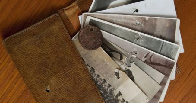 0Pozele cu familia, puse în portofelul din buzunarul de la piept, i-au salvat viaţa unui soldat american în timpul Primului Război Mondial.