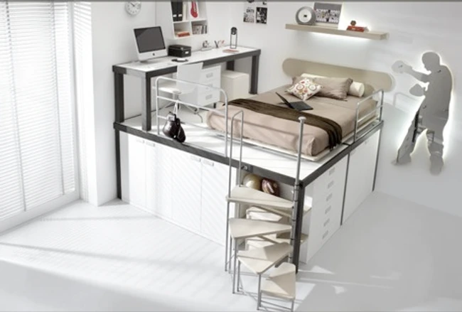 Iată câteva idei de camere în care spaţiul a fost folosit astfel încât să ofere puţină intimitate, o zonă pentru lucru şi multe locuri de depozitare.