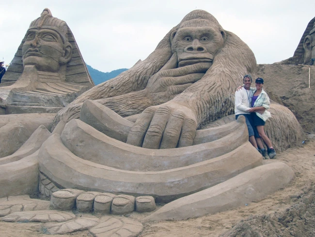 Artistul britanic Paul Hoggard şi soţia lui, Remy, cutreieră lumea întreagă şi realizează, cu grijă faţă de cele mai mici detalii, monumente masive şi spectaculoase din nisip.
