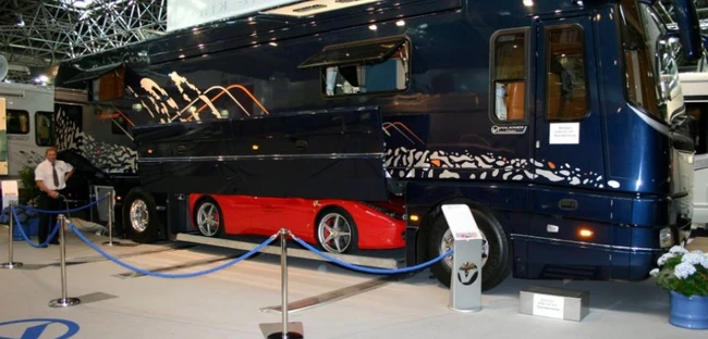 0Un constructor de mașini a dus conceptul de rulotă la un alt nivel. Dincolo de dotările „standard”, Volkner Mobil Performance Bus dispune de un compartiment special construit pentru a „adăposti” o mașină de lux, cum ar fi un Ferrari sau un Lamborghini.
