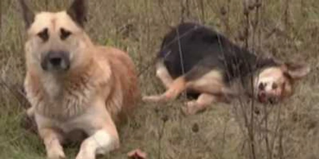 Devotamentul patrupedelor nu are limite: un câine maidanez din Rusia refuză să-şi părăsească partenera ucisă de o maşină pe un drum.