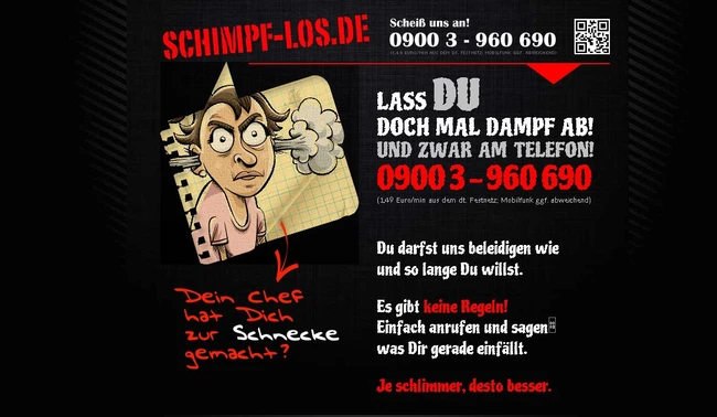 Apelul la linia pentru înjurături e taxat cu 1.49 euro/minut, un preţ pe care Schulte îl consideră pe deplin justificat: "Pentru cât de multă furie descarci aici, e chiar un chilipir!"