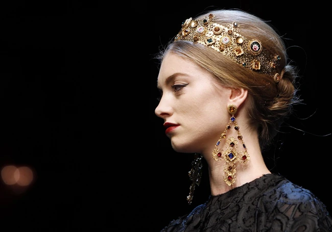O colecţie controversată aparţine duoului Dolce&Gabbana, care a apelat la figurile sfinţilor pentru imprimeurile rochiilor, dar şi la simboluri creştine ca sursă de inspiraţie pentru accesorii. De la genţile care aduc aminte de catedrala Santa Maria Nuova, din Monreale, casa de modă a exagerat cu cruci mari bizantine, mult aur, modele de mozaic, dar mai ales coroane. Fiecare model a purtat o coroană din aur masiv care a completat gama de accesorii cu tentă siciliană.