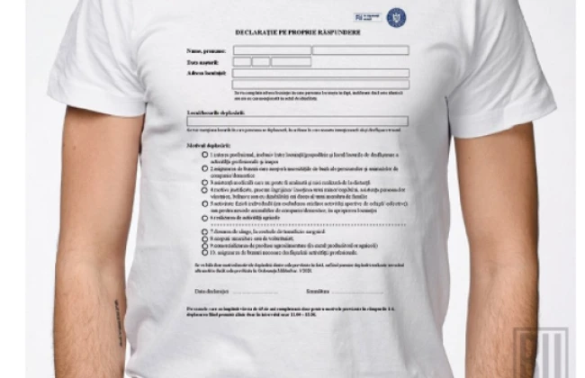 Pe fondul noilor măsuri restrictive impuse de autorităţi pentru stoparea răspândirii infecţiei cu Covid-19, mai multe magazine online au scos la vânzare tricouri inscripţionate cu declaraţia pe propria răspundere care trebuie completată de români atunci când ies din locuinţe.