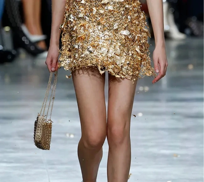 0O geantă rafinată, confecționată din aur de 18 carate și care a necesitat 100 de ore pentru a fi realizată, creație a brandului de lux Rabanne, evaluată la un sfert de milion de euro, a putut fi admirată în cadrul Săptămânii Modei de la Paris, aflată în derulare (23 septembrie - 1 octombrie 2024).