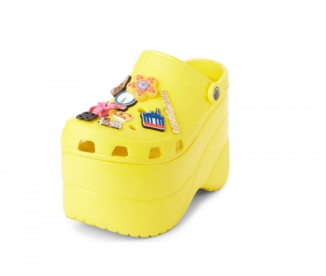 Vorbind într-un interviu pentru „Vogue“ despre ideea de a transforma crocs într-o piesă cool în colecţia pentru primăvara-vara lui 2018, Demna Gavasalia a mărturisea că i s-au părut nişte încălţări foarte inovatoare. „Sunt uşoare, realizate dintr-o singură bucată, iar pentru mine acest tip de tehnici şi materiale sunt reprezentative pentru Balenciaga“. Ba chiar, designerul este convins că în viitor ne vom putea printa 3D acasă propriile modele de crocs. Până atunci, a adus pe catwalk modele supradimensionate de crocs, desprinse parcă din desene animate, realizate din spumă de plastic şi împodobite cu tot felul de mici ornamente şi figurine colorate. Pot fi deja cumpărate la preţuri între 350 şi 695 de euro perechea.