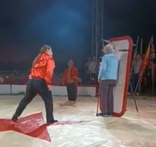0O femeie în vârstă de 99 de ani și-a îndeplinit visul de-o viață, acela de a fi atacată cu cuțite în timpul unui spectacol de circ live.