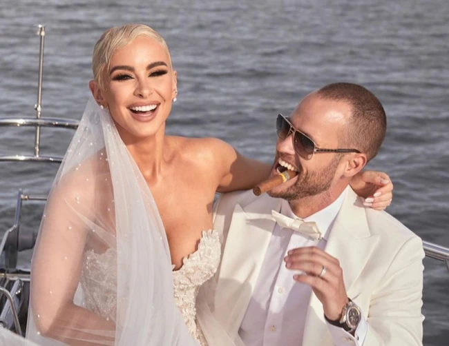 Cei doi îndrăgostiți s-au căsătorit în orașul lor natal din Australia, de pe Gold Coast. Tânăra, în vârstă de 33 de ani, și-a făcut inițial apariția într-o rochie cu mâneci lungi, cu un decolteu generos și o trenă dramatică, la ceremonia ei privată.