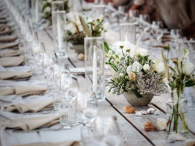 Mesele dreptunghiulare de preferat mai lungi, ar fi definiția unui eveniment care se desfășoară pe plajă, în opinia organizatoarei de la malul mării. De asemenea, pentru redarea unei atmosfere cât mai romantice, lumânările nu ar trebui să lipsească din decor.