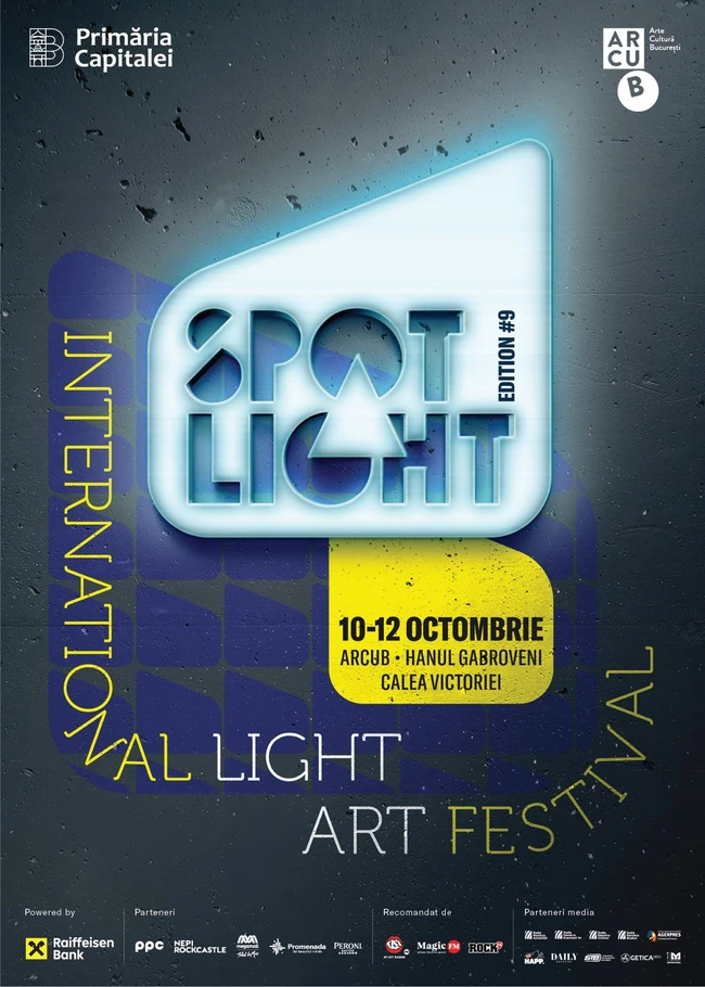 0Primăria Municipiului București, prin ARCUB – Centrul Cultural al Municipiului București, organizează între 10-12 octombrie 2025 cea de-a noua ediție a Spotlight – International Art Light Festival, primul și cel mai amplu festival al luminii din Capitală, care încântă anual peste 300.000 de participanți.