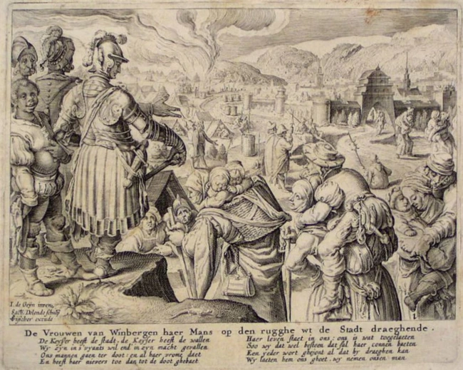 O cohortă întreagă de femei, de la adolescente și până la cele mai în vârstă, ieșeau din cetate cărând în spate fiecare câte un bărbat. Majoritatea cărau în față și câte un copil, plus alții doi sau trei atârnați de poalele rochiilor. Așa s-au gândit ele să profite de înțelegerea cu Conrad pentru a salva pe toată lumea din castel. Își cărau în spate frații, soții, ibovnicii, tații, verii, pe oricine puteau lua. Au lăsat în urmă toată agoniseala lor. Femeile bogate au renunțat la toate bijuteriile ca să poată căra câte un bărbat. Viața era mai presus decât orice bijuterie sau bun material. La rândul lor, bărbații lepădaseră orice armă sau armură, tot ce putea să îngreuneze sarcina curajoaselor femei. Inițial, deranjați de înșelăciune, cavalerii lui Conrad s-au pregătit să-i ucidă pe toți. Împăratul romano-german, impresionat de istețimea și loialitatea femeilor, i-a oprit. A ținut să precizeze că un cuvânt dat se ține cu orice preț. Femeile puteau pleca libere cu tot ceea ce puteau duce în spate, iar ele au ales să-i salveze pe bărbații din cetate. Mai mult decât atât, Conrad le-a dat merinde și ce aveau nevoie pentru a continua drumul către cel mai apropiat castel al Welfilor.