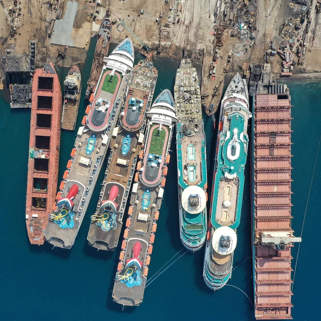 Dezmembrarea navelor mari este o muncă complexă și periculoasă care are loc mai ales în țările în curs de dezvoltare, în locuri precum vastul șantier naval din Chittagong, Bangladesh. Dar unul dintre cele mai aglomerate locuri unde se practică acest lucru este în Turcia, pe coasta azurie, răspândită de turiști, de lângă Izmir. Șantierul naval Aliağa este a patra cea mai mare instalație din lume și, pe măsură ce efectul croazierelor anulate a început să se facă simțit, multe dintre companiile de croazieră și- au trimis navele uriașe la dezmembrare.
