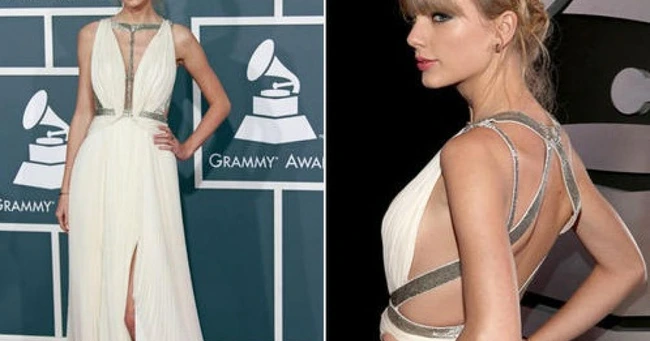 Taylor Swift a fost o prezenţă diafană pe covorul roşu, arătând ca o zeiţă, în rochia sa albă din chiffon, cu aplicaţii metalice creată de J. Mendel.