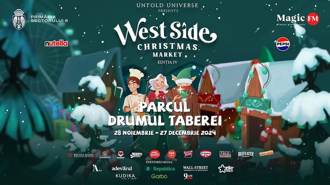 “West Side Christmas Market” readuce magia Crăciunului în Parcul Drumul Taberei din Sectorul 6 din București. Târgul de Crăciun organizat de UNTOLD UNIVERSE, în parteneriat cu Primăria Sectorului 6, este primul târg din București care își deschide porțile, joi, pe 28 noiembrie, începând cu ora 17:00. Ne așteaptă 30 de zile pline de farmec care vor aduce în Parcul Drumul Taberei din Sectorul 6, din București, strălucire, culoare, magie, savoare, emoție, distracție și sărbătoare. Evenimentul de deschidere include momente speciale precum: aprinderea luminilor festive, concert Direcția 5 și spectacol de artificii. Weekend-ul 29 noiembrie - 1 decembrie aduce show-uri live susținute de Fuego, Irina Sârbu și Viorica Pintilie și o mulțime de surprize pentru participanți. “West Side Christmas Market” va rămâne deschis până pe 27 decembrie.
