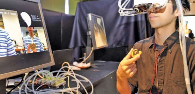 Prototipul a fost realizat de studenţii de la Universitatea din Tokyo şi a fost prezentat săptămâna trecută la expoziţia anuală Digital Content Expo, desfăşurată în capitala Japoniei, scrie AFP.Sistemul inovator este compus dintr-o cască la care sunt ataşate o pereche de ochelari şi o cameră video, situată pe axa ochilor. Toate aceste elemente sunt conectate la un computer.