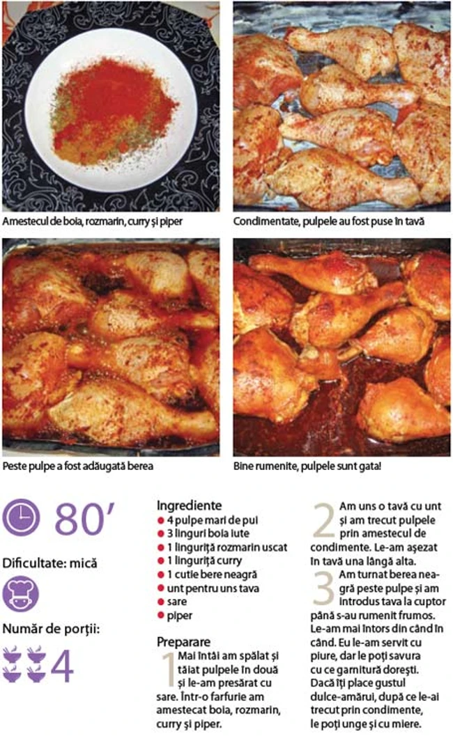 Reţetele Marianei: Pulpe picante de pui în bere