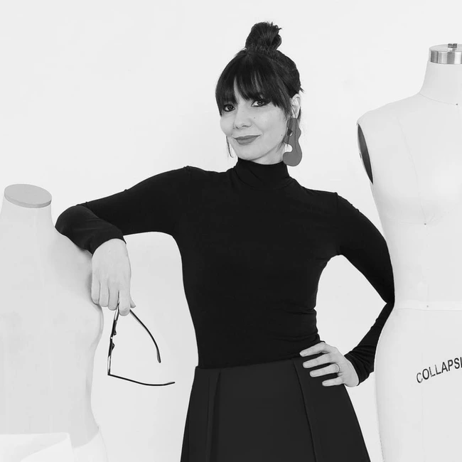 Toate creațiile vestimentare create de Camelia Skikos în atelierul său din San Francisco sunt fabricate pe plan local, din materiale sustenabile, de proveniență exclusiv vegană, în ediții limitate, din dorința de a menține o amprentă redusă asupra mediului.