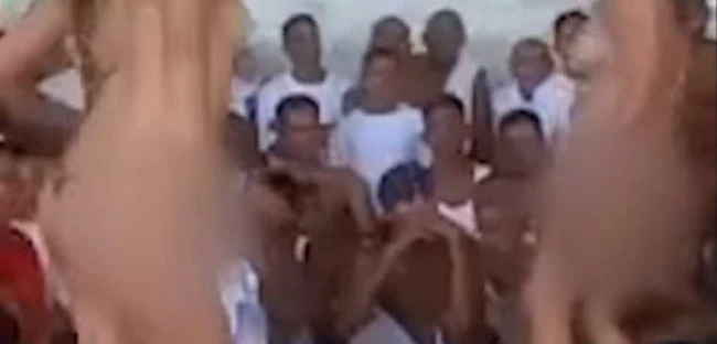 Filmarea prezintă trei dansatoare care rămân goale în faţa deţinuţilor dezlănţuiţi, iar unul dintre bărbaţi poate fi auzit în timp ce strigă spre acestea: „Dansaţi, dansaţi, veniţi mai aproape, nu vă faceţi griji, nu o să vă atingă nimeni!”, notează „Daily Mail”.