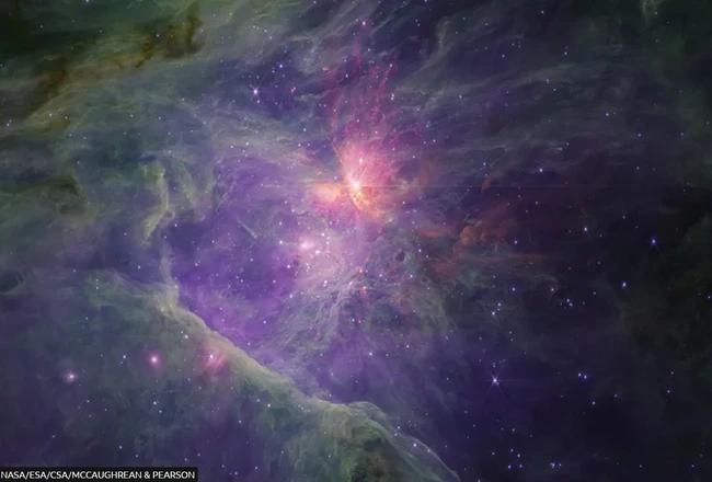 Nebuloasa Orion, cunoscută și ca M42, este cea mai apropiată regiune din apropierea Terrei unde se formează stele. Ea poate fi văzută cu ochiul liber în timpul nopții ca o „pată” pe cer. Această nouă imagine obținută de Webb este un mozaic format din cele 700 de imagini captate de instrumentul NIRCam al telescopului în decursul unei săptămâni de observații.