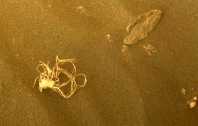 0Roverul Perseverance al NASA a surprins o imagine neobişnuită a unui obiect care zace în nisipul roşu de pe Marte: un mănunchi de sfoară.