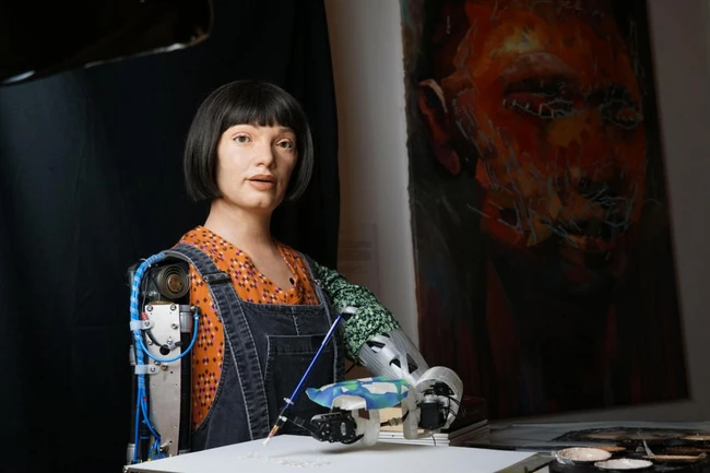 Robotul Ai-Da a fost conceput la Oxford de Aidan Meller, un specialist în artă modernă şi contemporană, înainte de a fi construit în Cornwall de Engineered Arts şi programat la nivel internaţional.