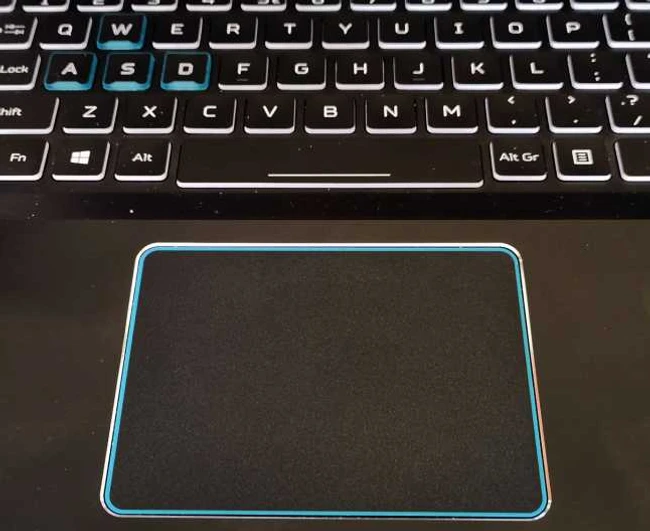 Touchpad-ul e mare, responsiv, bun, dar la un laptop de gaming e util pentru orice altceva decât gaming. Se dezactivează prin combinaţia de taste Fn+F7. E plasat lateral stânga dacă priveşti interiorul în ansamblu, puţin ciudat ţinând cont că e mai aprope de tastele WASD. Un motiv în plus să-l dezactivezi.