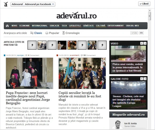 0Cititorii „Adevărul” pot accesa cele mai noi ştiri şi postări de blog direct de pe reţeaua socială Facebook. Aplicaţia „Adevărul pe Facebook” le permite utilizatorilor să vadă ce articole au citit prietenii lor.